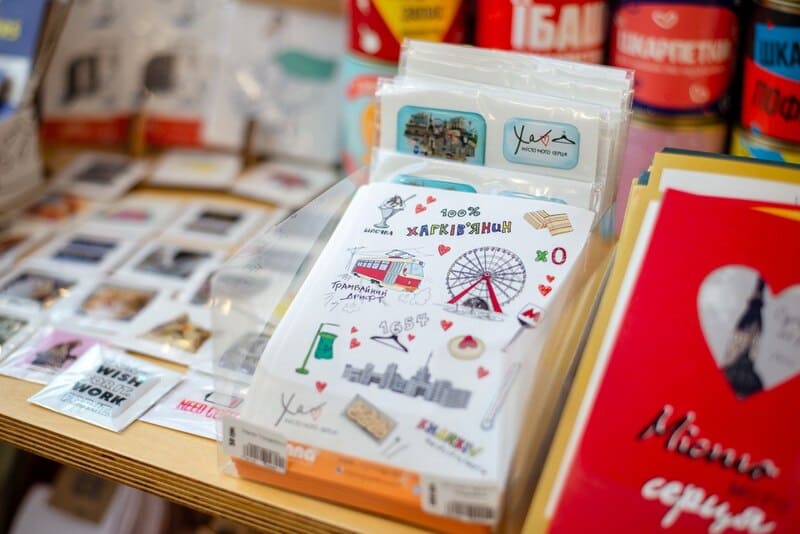 - Чашки, фартухи, брелоки, стікери та листівки з надписами про Харків — дрібнички, які приносять посмішку щодня.