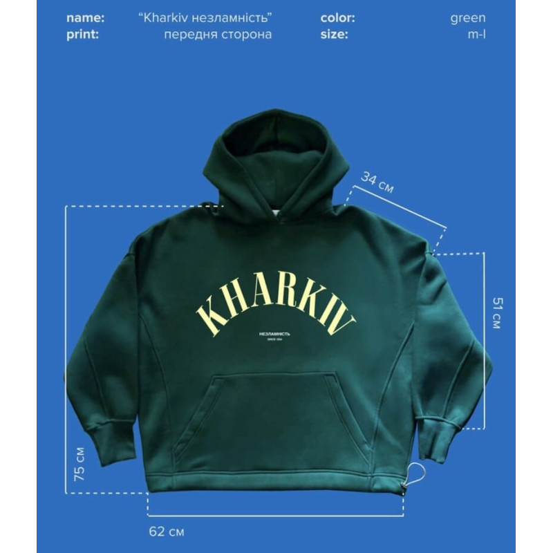 Худі Харків Незламність – це не просто одяг, а символ стійкості та гордості за рідне місто. Створене у фірмовому кольорі Харкова, воно дарує тепло, комфорт і щоденне нагадування про силу незламного міста.
