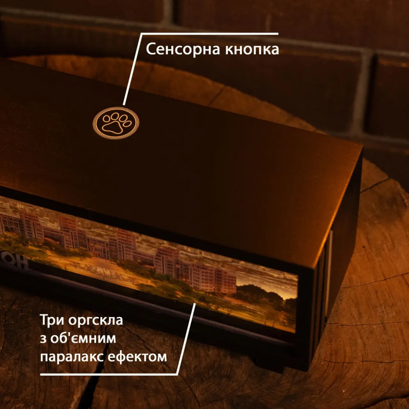 Нічник-панорама «Харків — залізобетон» — це більше, ніж світильник. Це символ незламності, сили та духу Харкова, який оживає у теплому світлі.