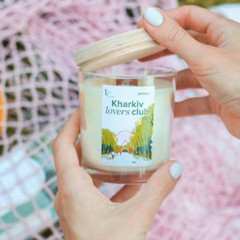 Ароматная свеча «Харьков | Kharkiv Lovers Club» с деревянной крышкой