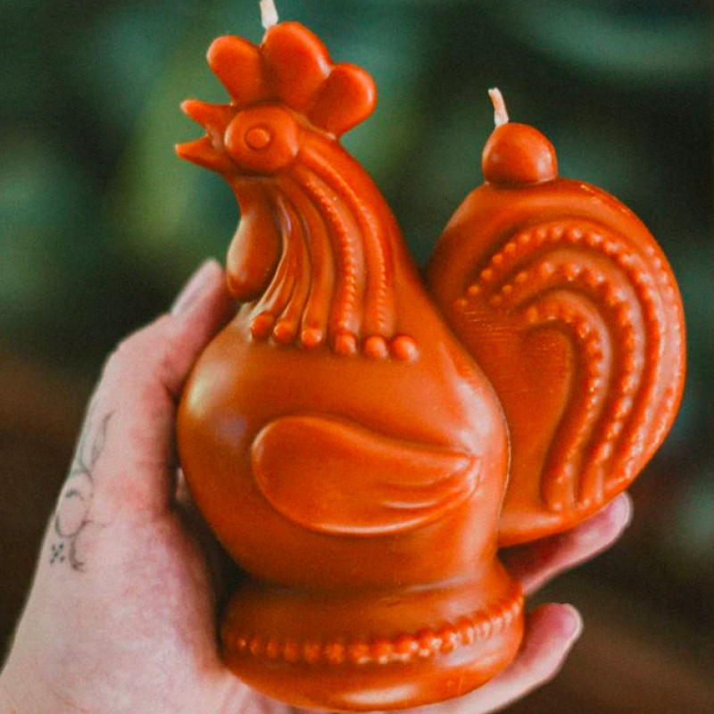 Свічка-півник «Вистоїмо» створена за мотивами легендарного півника з Бородянки, який став символом незламності українського народу. Вцілілий після обстрілів декоративний виріб із шафкою нагадує нам, що навіть у найважчі часи ми здатні вистояти.