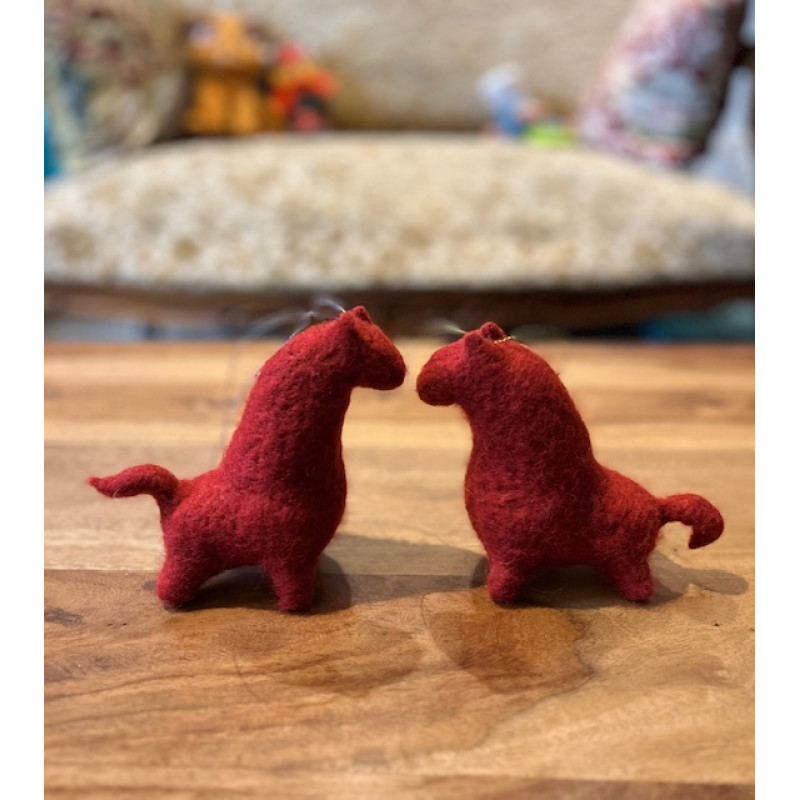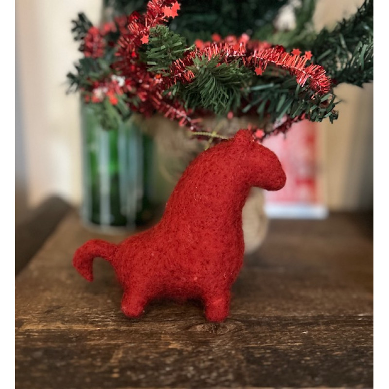 Цей яскравий червоний кінь створений із натуральної вовни технікою сухого валяння. Він приносить у дім атмосферу тепла, затишку та свята, а також символізує силу, енергію та нові можливості — усе, що ми очікуємо від 2026 року, року Коня.